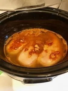 Once done, take two forks and shred the chicken pulling it apart. Once it’s all pulled, then let it sit and soak up the juices for another 10-15 minutes.
