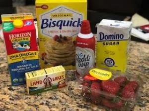 2. Break up one biscuit per person into big pieces into a dessert bowl and pour strawberries over the biscuit; add a dollop of whipped cream on top! YUM!