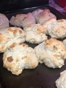 Drop the dough by rounded tablespoonfuls into 6 mounds onto an un-greased cookie sheet; then add a little sprinkle of sugar.