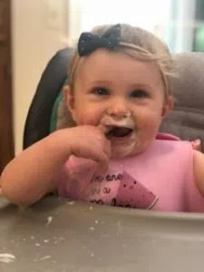 Other than crawling and growling, she also thinks it’s funny to spit her food out all over herself when shes done eating and makes a huge mess. Normal baby stuff, I know, but she likes to trick me into thinking she’s not done eating and will say “Mama!” so I give her another bite and she just spits it right back out and smiles I’m not going to lie…It’s pretty cute.