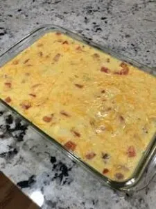We had a lot of leftover ham from Easter and were sick of ham sandwiches, so I decided to bake the rest into a breakfast casserole.