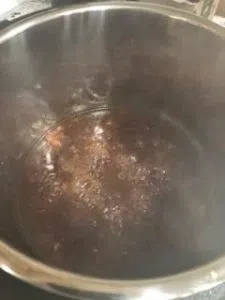 I used a 2 lb. boneless chuck roast (if yours is bigger you can slice it in half to make it fit), season it with taco or fajita seasoning on both sides. Turn the pot to sauté mode- add olive oil and brown the chuck roast for about two minutes on each side, then remove and set aside.