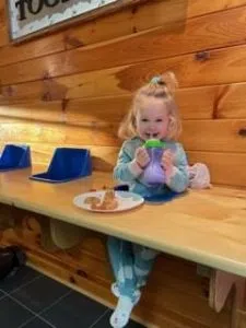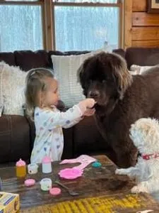 The second picture below is her playing and using her baby doll plates and silverware to feed my parent’s dog and our dog, Zoey They are her besties!