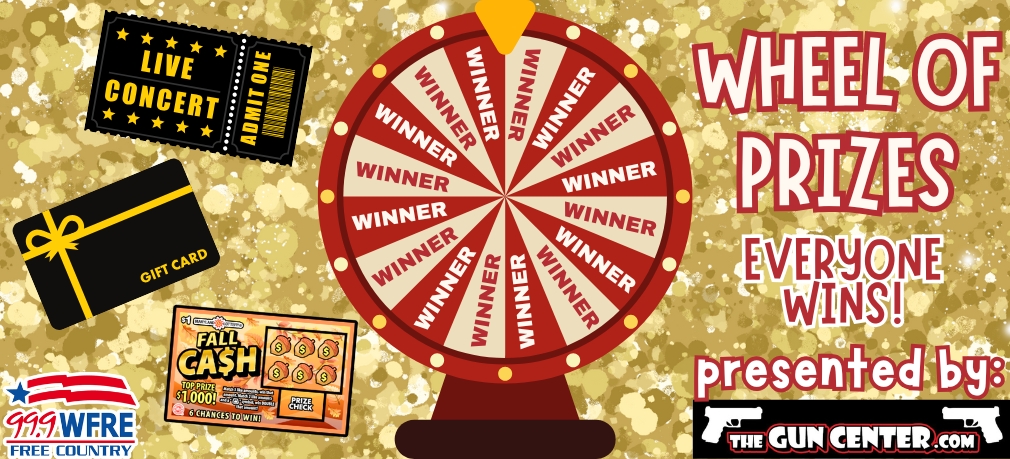 🎶 Keep it locked on 99.9 WFRE — when you hear the cue to call, be caller #9 and you’ll spin the wheel for a shot at: