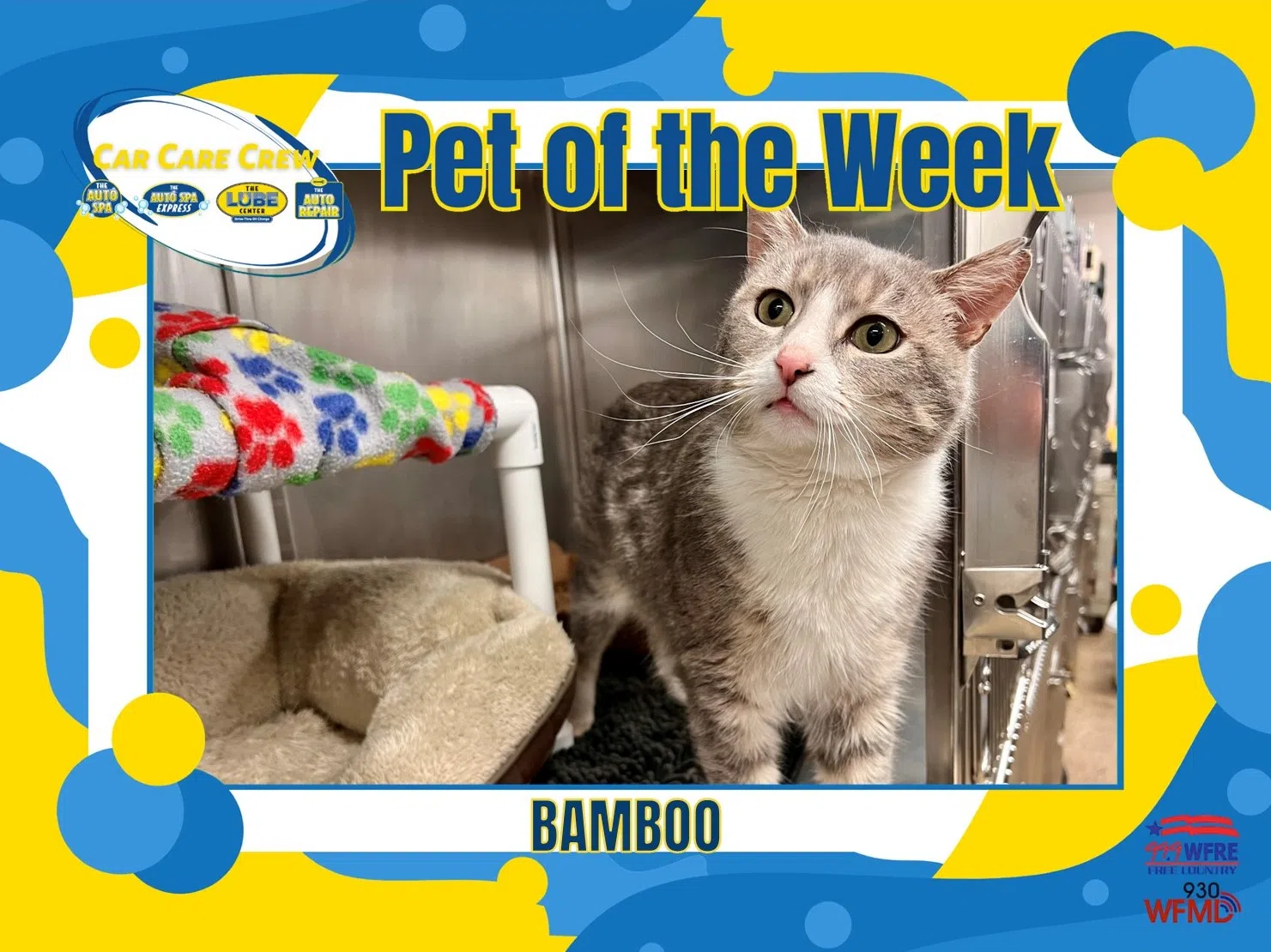 Meet Bamboo! A 2 year old male domestic shorthair cat available for adoption at Frederick County Animal Control A special thanks to WLR Automotive, Frey Ag, and Johnson & Johnson Heating and Air for sponsoring our Pet of the Week!