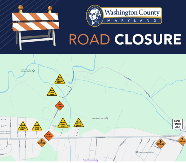 The affected section extends from MD 64, also known as Jefferson Boulevard, to the railroad tracks. During the closure, no traffic will be permitted through the work zone.